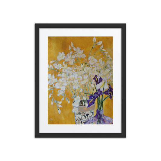 Breath of Spring Freesias & Irises Framed Matte Art Print on Paper