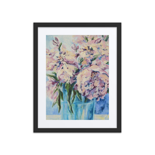 Blush Pink & Azure Peony Harmony Framed Matte Art Print on Paper
