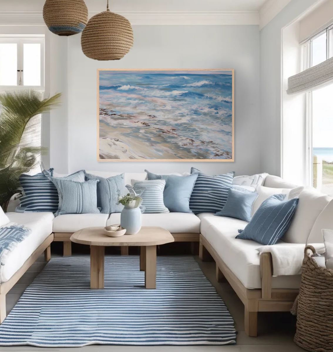 This print, inspired by the Menai Straits of Anglesey original painting, captures the serene beauty of soft evening light meeting gentle waves at the shore. The pastel tones and peaceful composition evoke quiet strolls along the beach, moments of solitude, and the calming embrace of coastal living. Perfect for creating a sanctuary in your home, this design brings the soothing rhythm of the sea to your space—a reminder to slow down and dream of the shore, even on the busiest days.